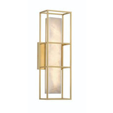 Organic and industrial have been combined. The softness of alabaster panels surrounded by the strength of a metal frame represent the yin and yang of a home…the warmth of the people safely ensconced inside the structural soundness of building, illuminated by this wall mounted lighting.