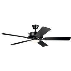 Equipped with an integrated LED light and handheld wall control, this ceiling fan with Satin Black finish complements a variety of decors and lighting styles.